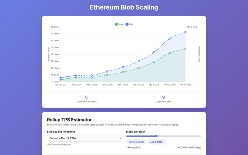 Simulate changes in blob count, rollup count, and TPS to estimate blob usage.